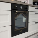 Ein weiteres Highlight dieser Küche ist der nostalgische SMEG Einbaubackofen SFP750AOPZ. Mit einer Breite von 60 cm und praktischen Funktionen wie Pyrolyse und Pizza-Backmodus wird das Kochen zum Vergnügen. Das anthrazitfarbene Gehäuse und die Messing-Antik-Elemente verleihen dem Backofen einen einzigartigen Charme.