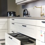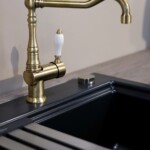 Die Villeroy & Boch Keramikspüle Subway Style 60 S Flat in der Farbe Ebony fügt sich nahtlos in das Design der Inpura Concept RAVENNA Landhausküche ein. Dank des flächenbündigen Einbaus wirkt die Spüle besonders elegant und lässt sich mühelos reinigen. Die dazugehörige Einhand-Spültischbatterie Avia 2.0 in Gold rundet das Gesamtbild ab und verleiht Ihrer Küche einen Hauch von Luxus.