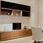 Als Arbeitsplatte wurde die OSSIDO NERO Laminam ® Keramikarbeitsplatte mit einer Stärke von 16mm auf Gehrung gewählt. Sie ist flächenbündig eingebaut und verfügt über integrierte Spülen- und Kochfelder.
